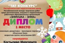 Воспитанники детского сада приняли активное участие в республиканском творческом конкурсе " Тат-конкурс" " Зимушка-зима" и заняли призовые места.Поздравляем всех участников и их руководителей!/