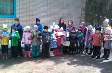 В гостях у детей Веснушка и Кнопочка, с песнями, играми, с танцами.
