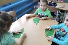 Ребята младшей группы "Теремок" старательно украшают елку.