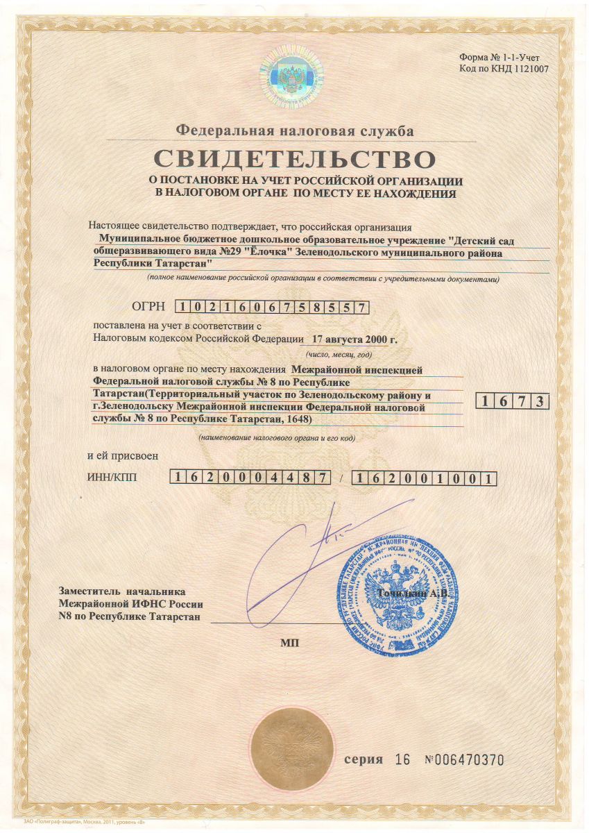Короткое название: МБДОУ "Детский сад №29 "Ёлочка" ЗМР РТ"