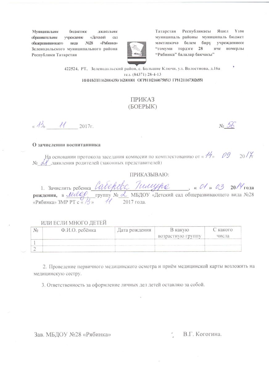 Короткое название: МБДОУ "Детский сад №28 "Рябинка" ЗМР РТ