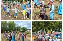 И снова у нас в гостях сотрудники сельской библиотеки! Для ребят они провели интересный фольклорный праздник. Все вместе спели песенку «Калинка-малинка», поиграли в татарские и русские народные игры «Тубетейка», «Гори, гори ясно». И даже на этот праздник пришла Баба Яга, но ребята не испугались и пригласили ее с ними поиграть.
