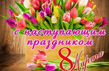 Милые женщины, коллеги!!! В преддверии весеннего праздника 8 Марта желаем вам здоровья, ярких впечатлений, положительных эмоций, великолепного солнечного настроения! Наполняйте свою жизнь радостью, открывайте для себя новых друзей, новые города и страны! Пусть всегда все будет так, как вы этого хотите!!!!