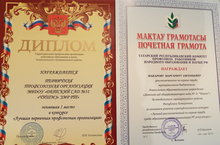 Сегодня в гимназии №3 прошёл Пленум территориальной профсоюзной организации работников образования и науки Зеленодольского муниципального района. Первичная профсоюзная организация МБДОУ «Детский сад №31 «Чишмэ» заняла первое место в конкурсе «Лучшая первичная профсоюзная организация» и была награждена Дипломом. Уполномоченный по охране труда был награжден Почетной грамотой за активное участие в республиканском конкурсе «Лучший уполномоченный по охране труда среди образовательных организаций РТ 2013-2014гг.».