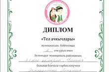 Тәрбияләнүче Әхмәдуллина Илһамияне "Тел ачкычлары" муниципаль конкурсында 2 урын белән котлыйбыз. Педагоглары Мәрданова И. Т., Сөнгатуллина А. Ф. Әфәрин! Киләчәктә дә уңышлар теләп калабыз!