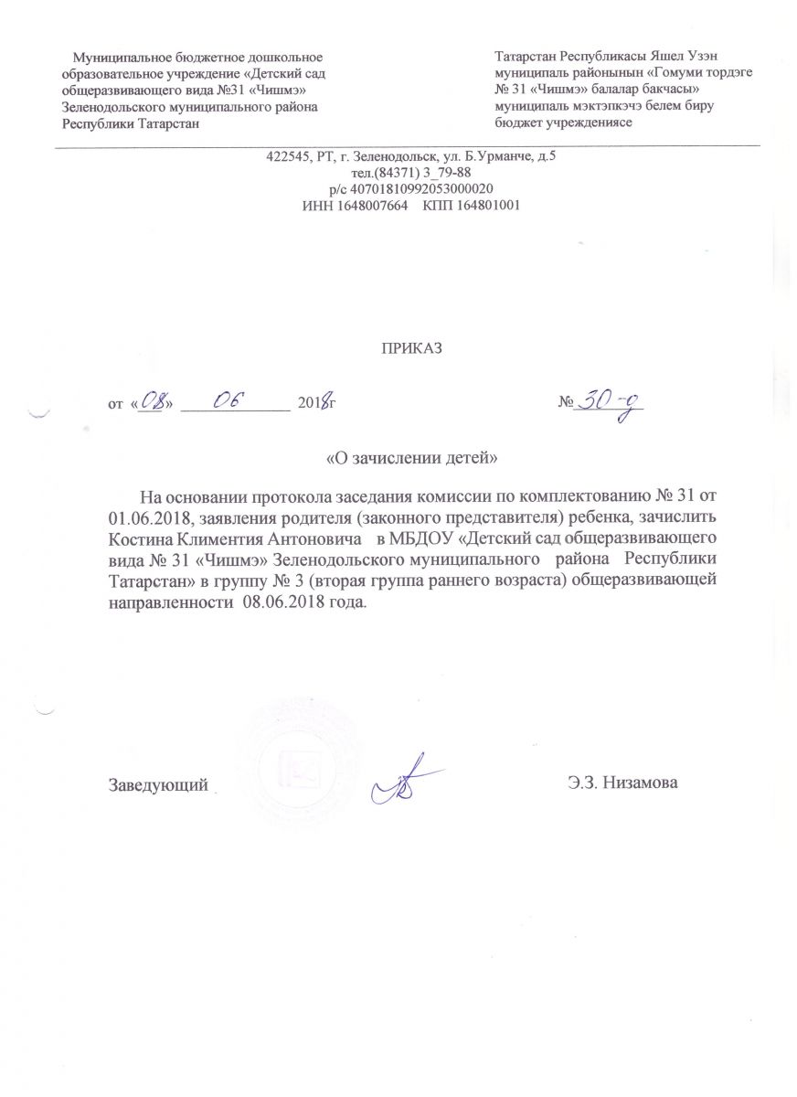 | Короткое название: | МБДОУ "Детский сад общеразвивающего вида №31 "Чишмэ" ЗМР РТ |