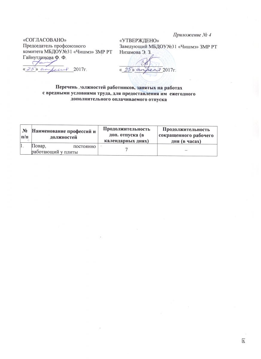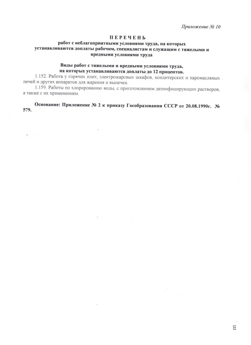 Приложение 10 Перечень работ с неблагоприятными условиями труда