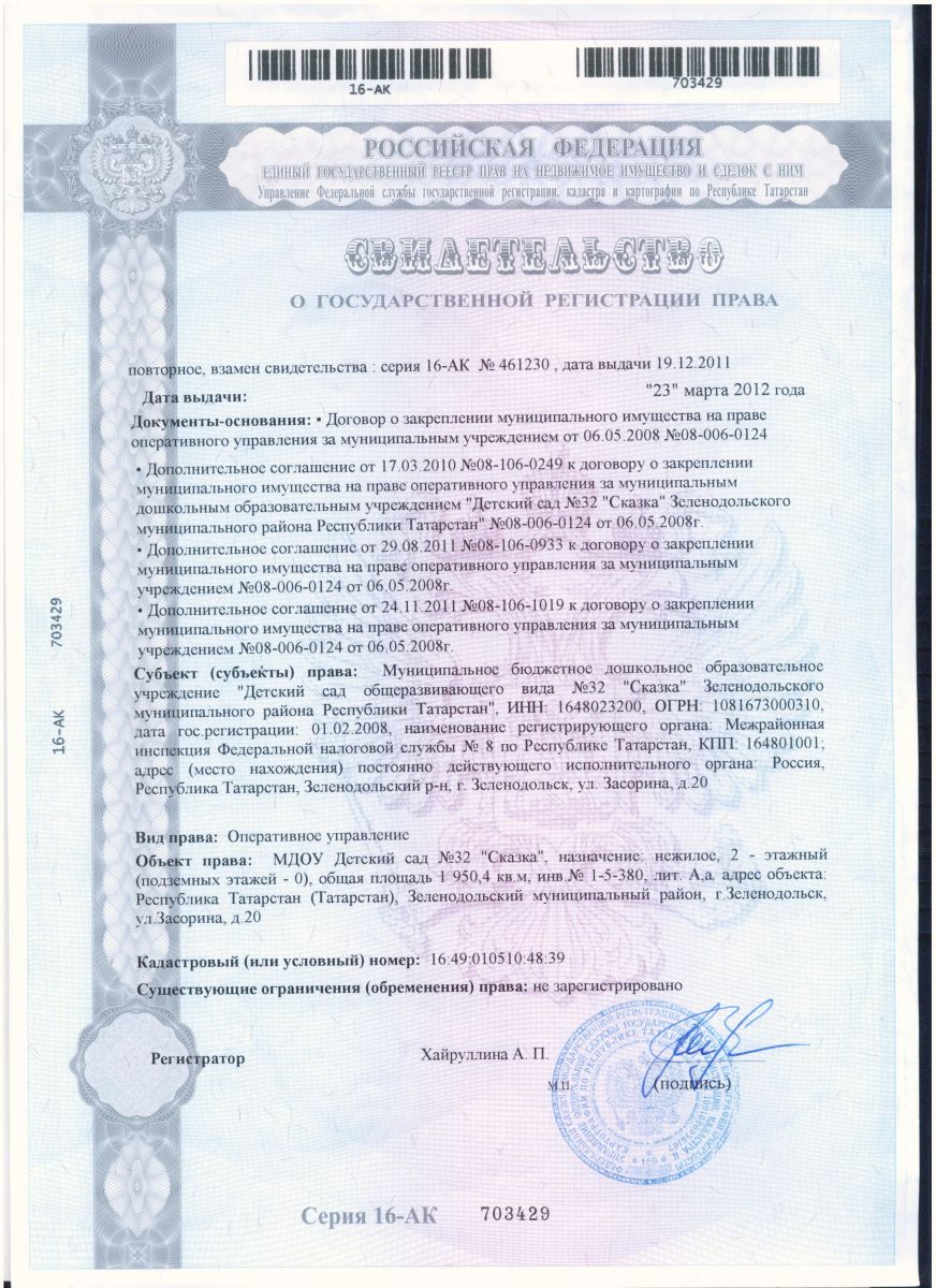 | Короткое название: | МБДОУ "Детский сад общеразвивающего вида № 32 "Сказка" ЗМР РТ" |