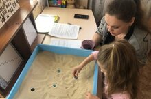 На фото, фрагменты коррекционно-развивающего занятия с воспитанницей педагогом-психологом нашего детского сада Сухоруковой Е.В. -