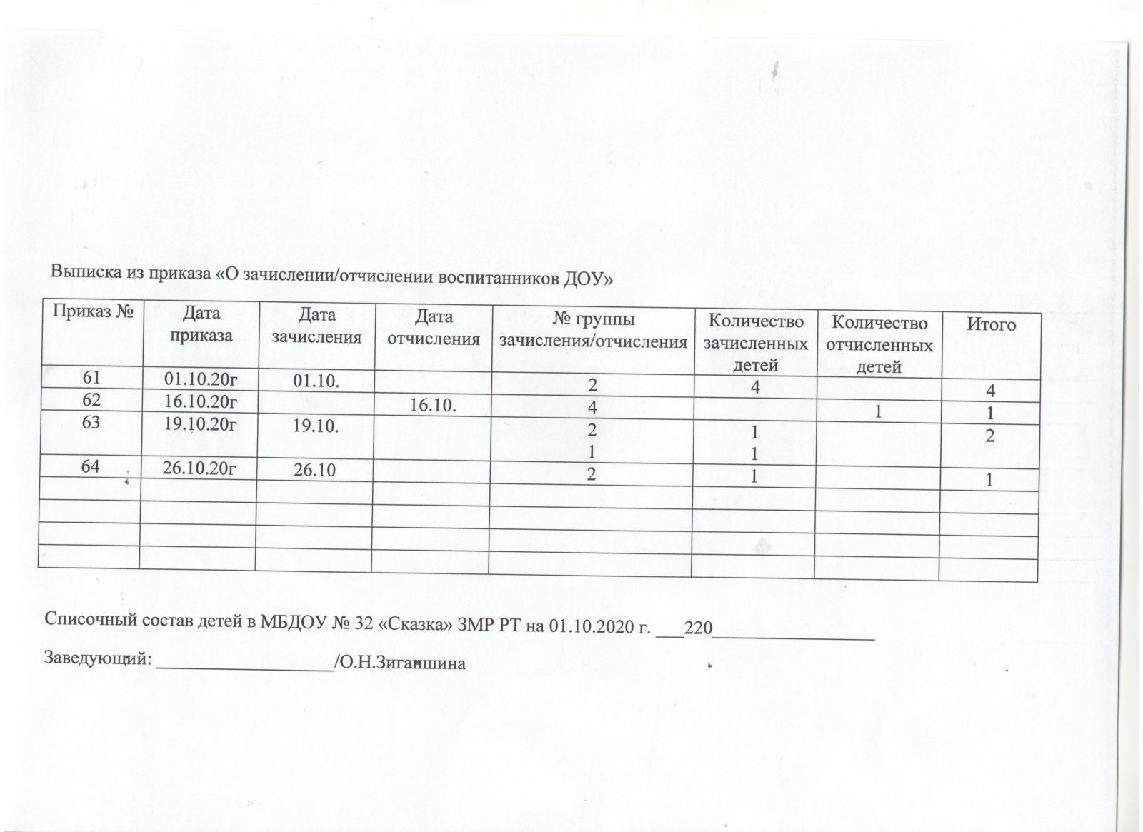 выписка из приказов движения воспитанников от 01.10.2020 г.