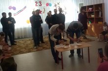 Очень весело прошел утренник ко Дню Защитника Отечества в подготовительной группе. Музыкальный руководитель Белякова О.В. и воспитатель группы Шигабутдинова Т.Н. провели с папами столько различных конкурсов и эстафет, что смеху и восторженных улыбок со стороны детей не было предела.
