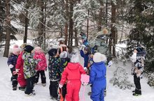 Во время прогулки педагоги организуют с ребятишками разнообразные игры и наблюдения за природой.
