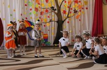 В нашем детском саду прошли осенние праздники для всех возрастных групп. Красавица Осень заглянула в каждую группу и к большим и к маленьким, никого не оставила без внимания, а дети встречали её как дорогую гостью — с песнями, танцами, сказками, играми, шутками да прибаутками!
