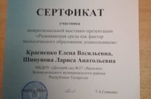 1октября в г.Санкт-Петербург состоялась 2 Межрегиональная конференция «Образовательная среда как ресурс экологического воспитания детей дошкольного возраста» в рамках «Экошколы-зелёный флаг». Наши педагоги старший воспитатель Шипунова Л.А. и воспитатель Красиенко Е.В. приняли участие в выставке и получили сертификат участника.