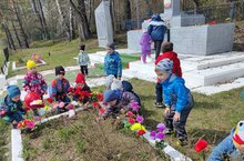Сегодня, накануне празднования Дня Победы - 9 Мая, воспитанники детского сада приняли участие в возложении цветов к Памятнику воинам, павшим в Великой Отечественной войне