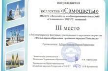 Балалар бакчасы педагоглары Кувшинова Е.В. һәм Бурунина В. И. мәктәпкәчә яшьтәге балаларны поликультура тәрбиясе һәм укыту буенча "Кызыклы китап" муниципальара лэпбуклар конкурсында 1 урын Диплом белән бүләкләнделәр. Афәрин!