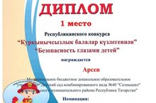 В республиканском конкурсе "Куркынычсызлык балалар күзлегеннән" - "Безопасность глазами детей" г. Набережные Челны заняли 1 место в номинации "Рисунок" и 1место в номинации "Фотоколлаж" воспитанники детского сада подготовительных групп №4 - Анна Б. и №5 - Арсен М.
