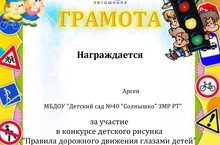 Яшел Үзән шәһәренең "Автоправо-М" автомәктәбеннән "Балалар күзлегеннән юл хәрәкәте кагыйдәләре" дигән балалар рәсеме конкурсы нәтиҗәләре буенча Татарстан Республикасы Яшьләр эшләре, спорт һәм туризм министрлыгының 40 нчы номерлы "Солнышко" балалар бакчасында тәрбияләнүчеләргә катнашучыларның дипломнары һәм кызыксындыру бүләкләре тапшырылды.