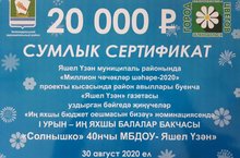 40-нчы номерлы "Кояшкай" балалар бакчасы "миллион чәчәк шәһәре" проекты кысаларында "Яшел Үзән" газетасыннан "чәчәк ата торган ишегалды 2020"муниципаль конкурсында җиңүче булды. Татарстан Республикасы көне кысаларында 30.08.2020 елда сертификат тапшырылды. Котлыйбыз!!!