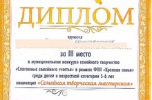 елмаюлары " исемле гаилә иҗаты муниципаль конкурсында катнаштылар Гаилә", "Гаилә иҗади остаханәсе"номинациясе.