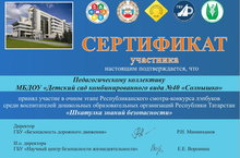 Педагогический коллектив МБДОУ №40 "Солнышко" отмечен сертификатом участника очного этапа Республиканского смотра-конкурса
