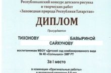 Призёрами в Республиканском конкурсе детского рисунка и творческих работ "Заповедная природа Республики Татарстан" в номинации "Оригинальные работы" стали воспитанники