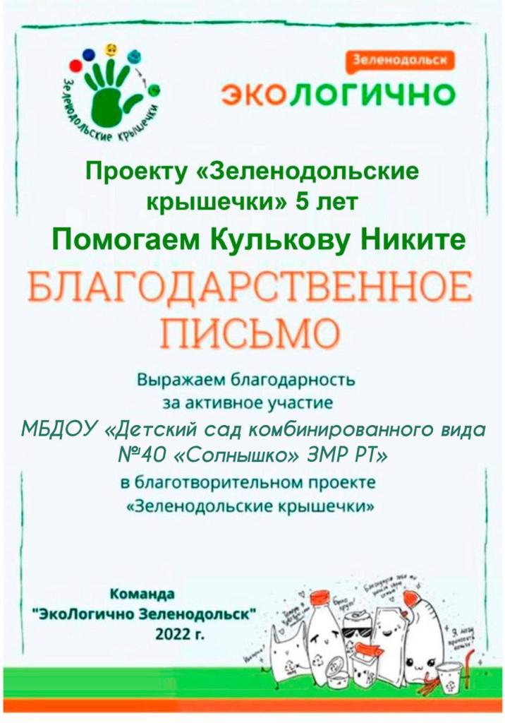 Проект "Зеленодольские крышечки"
