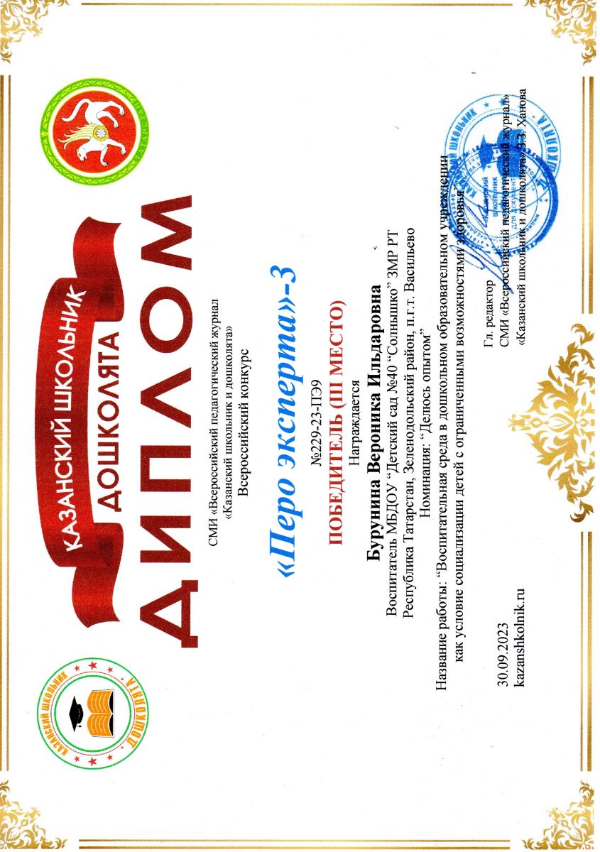 Призер Всероссийского конкурса "Перо эксперта - 3"