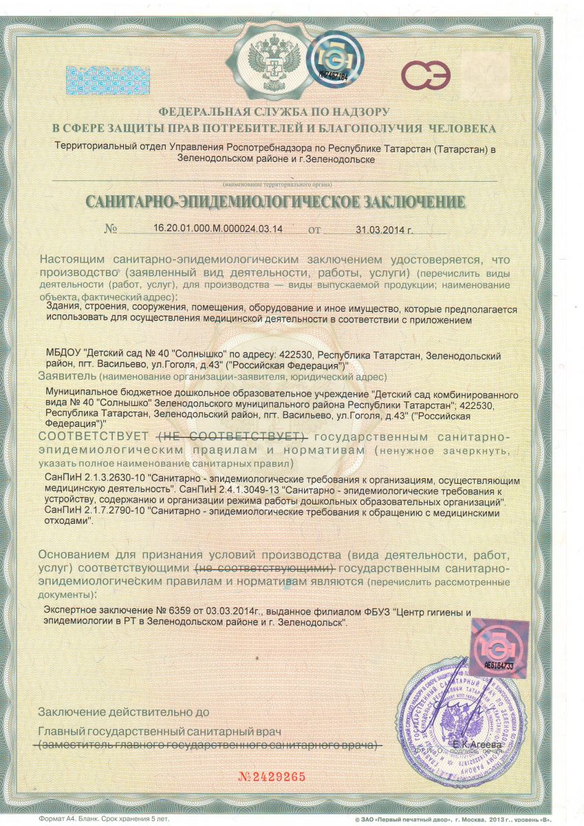 Санитарно-эпидемиологическое заключение