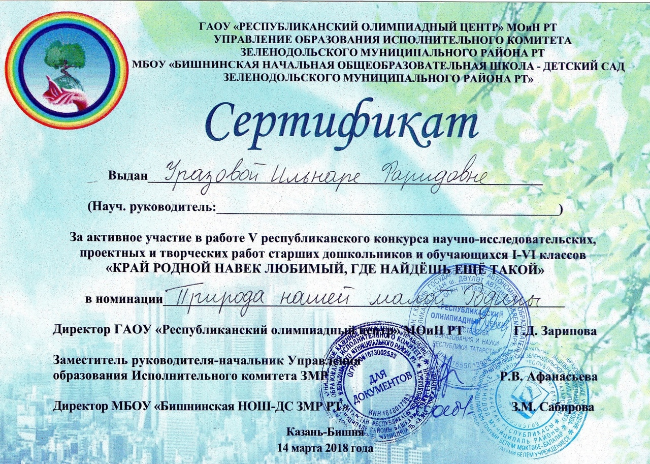 | У нас учат: | Уразова Ильнара Фаридовна, Гирфанова Ралия Тафкиловна; |