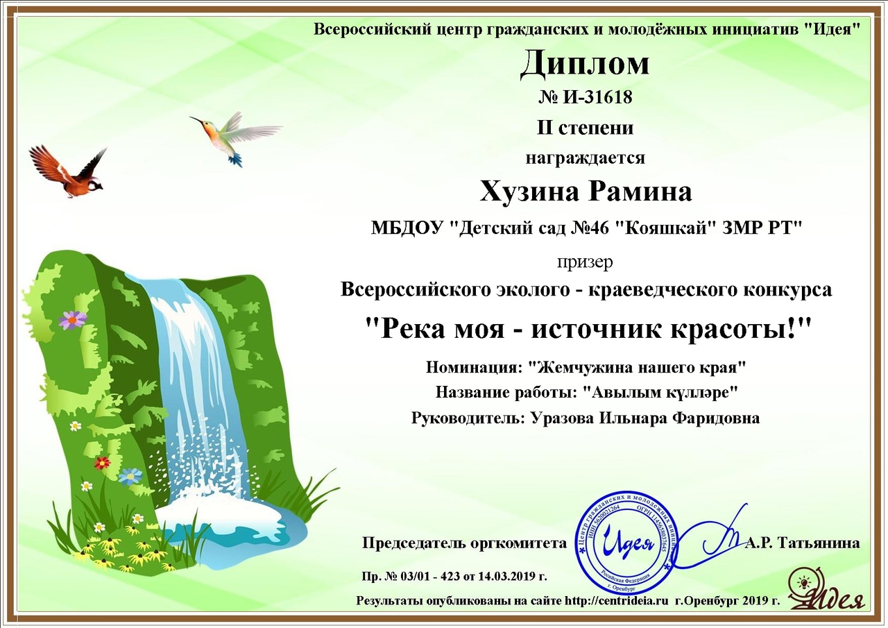 Уразова И.Ф. 1 место в конкурсах "Ласковое лето солнышком согрето", "Экологический островок"