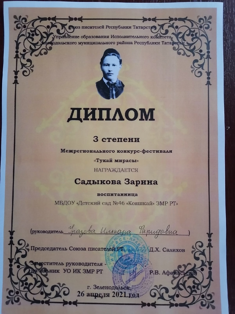 Садыкова Зарина "Тукай мирасы" 2 место в конкурсе "Фестиваль талантов"