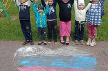 Детям было рассказано, почему наш флаг состоит из трех цветов, и что обозначает каждый цвет. Так же детям было рассказано о Гимне России. Дети послушали Гимн нашей страны.