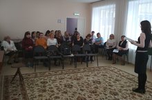 Сегодня на базе нашего Учреждения прошел семинар-практикум воспитателей дошкольных образовательных учреждений Зеленодольского муниципального района РТ в рамках работы Клуба молодого педагога на тему "Игровые образовательные ситуации как нетрадиционная форма работы с детьми дошкольного возраста". В семинаре приняли участие 16 педагогов нашего детского сада. Начала работу семинара председатель Территориальной профсоюзной организации работников образования и науки ЗМР Копвиллем Н.Н. Игровые ситуации показали воспитатели Мягкова Н.В., Миннебаева Е.Б., Бердникова М.Н., Барскова О.Н.. Минеева И.В., Нестерова Л.А., Саягфарова В.А., инструктор по физической культуре Рогулина О.Г., воспитатель по обучению татарскому языку Рахманова Г.З. Воспитатели Майорова Ю.С. и Товарищева Е.В. провели мастер класс, Новикова Т.А. - деловую игру. В холле была представлена выставка лэпбуков и стендовый доклад (Ахмедзянова И.Ш.). Семинар получил высокую оценку.