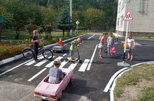 Обучение правилам дорожного движения в детском саду – это жизненная необходимость. В детском саду ребенок должен усвоить основные понятия системы дорожного движения и научиться важнейшим правилам поведения на дороге. ПДД в детском саду – это довольно большой комплекс знаний, который воспитатели стараются донести до детей, ведь от этого зависит их безопасность на дороге. В нашем саду состоялся День дорожной безопасности. Ребята вместе с воспитателями повторили правила безопасного поведения на дорогах, рисовали пешеходный переход, играли в игры на формирование у ребёнка навыков правильного поведения в нестандартных, а порой и опасных ситуациях на дорогах и в транспорте.