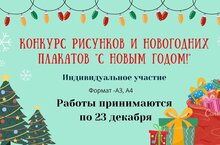 Конкурс рисунков и новогодних плакатов "С НОВЫМ ГОДОМ!". Индивидуальное участие. Формат работы - А3, А4; Работы принимаются по 23 декабря.
