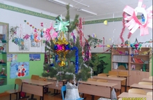 Сегодня в нашей школе прошел конкурс по новогоднему оформлению классов. Ребята нарядили елки, вырезали и сложили из цветной бумаги фонарики, домики, цепочки, снежинки, оформили тематические плакаты. Во всей школе царит новогодняя атмосфера. С наступающим Новым 2012 годом!