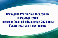 2023 год Указом Президента России Владимира Путина объявлен Годом педагога и наставника. Миссия Года – признание особого статуса педагогических работников, в том числе выполняющих наставническую деятельность. Мероприятия Года педагога и наставника будут направлены на повышение престижа профессии учителя.
