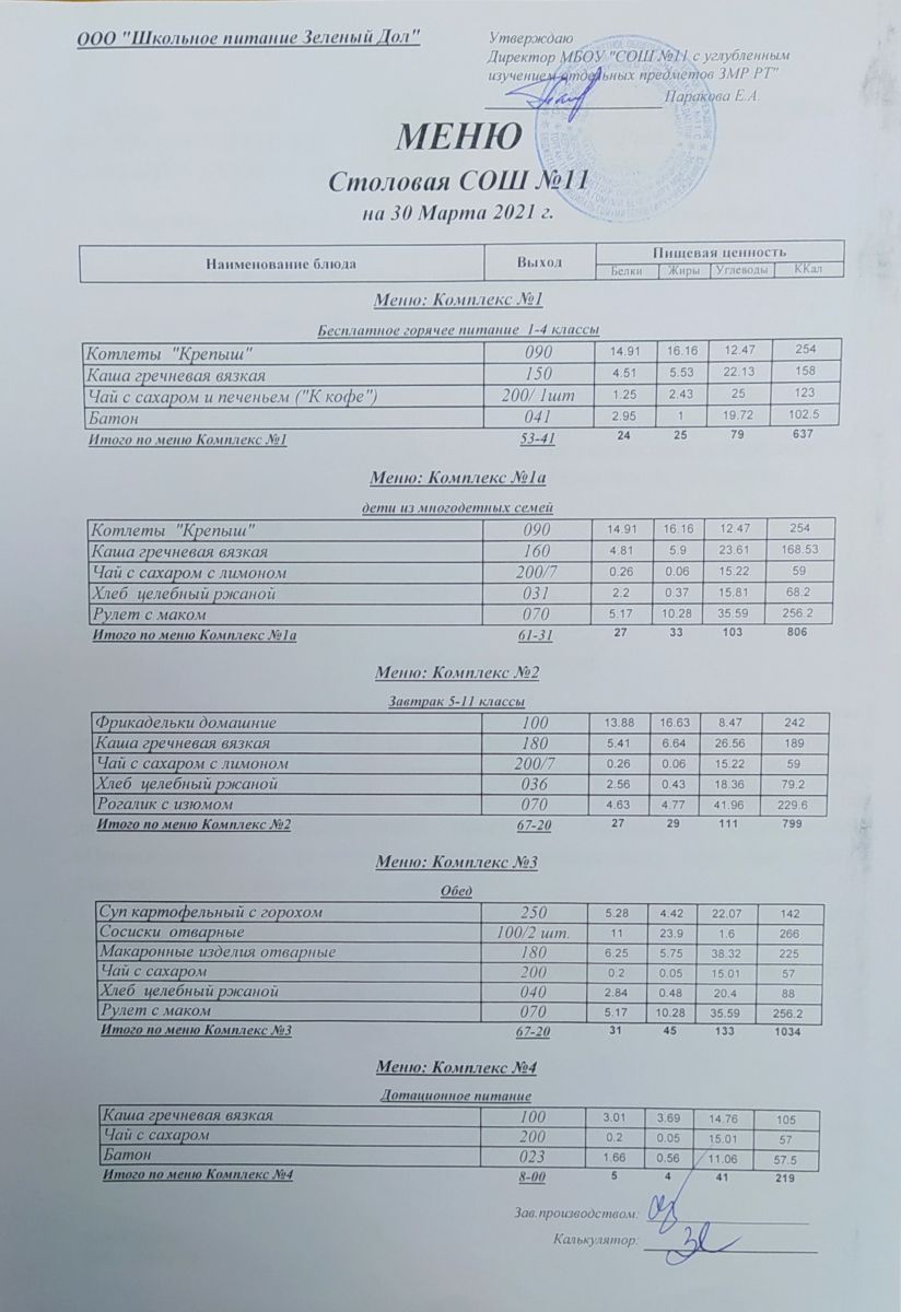 Школьное меню