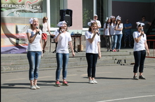В школе состоялось торжественное открытие летнего пришкольного лагеря "Солнышко". На открытие отряды готовили выступления: песни, танцы, стихи, сценки.