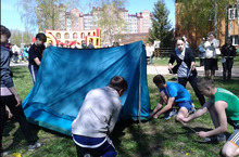 «Растим патриотов» 10.05.2013 9 мая команда СОШ №15 участвовала в городской военно-спортивной игре «Растим патриотов» в парковой зоне ДК «Горького» проходила. Команда «Бойцы» приветствовали участников соревнований, устанавливали палатку, преодолевали полосу препятствий и показали силовую подготовку определяли азимут и высоту зданий, читали топографические знаки, спасали товарища, отвечали на вопросы об истории ВОВ и об оказании первой помощи.