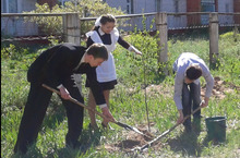 18 мая выпускники 9,11 классов посадили во дворе школы аллею из рябины, березы, сосен.