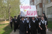Марш добра с полотном мира.