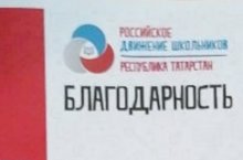 Активисты школьной организации "Содружество" (рук-ль Нотфуллина Л.Г.) получили Благодарность за активную деятельность и значительный вклад в развитие Общероссийской общественно - государственной детско - юношеской организации "Российское движение школьников" в Республике Татарстан.