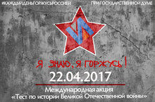 22 апреля 2017 года в рамках Федерального проекта Молодежного парламента при Государственной Думе «КАЖДЫЙ ДЕНЬ ГОРЖУСЬ РОССИЕЙ!» на базе школы была организована работа площадки акции «Всероссийский тест по истории Великой Отечественной войны», в которой приняли участие следующие учащиеся нашей школы: Кашарин Андрей, Медведев Кирилл, Мухамедшина Ниссо, Предченко Олеся, Самарин Никита - 10а класс, Прохоров Павел - 11а класс. Все ребята выполнили в течении 30 минут 30 заданий по истории Великой Отечественной войны и показали достойный уровень знаний.