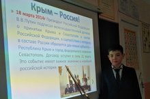 18 марта — особенная дата для крымчан и севастопольцев. В этот день 7 лет назад Крым и Севастополь были приняты в состав Российской Федерации на правах полноправных субъектов. Сегодня в нашей школе состоялись классные часы, посвященные годовщине воссоединения Крыма с Россией в знак поддержки и солидарности с крымчанами.