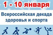 С 1 по 10 января 2021 года объявляется Декада здоровья, в течение которой будут проводиться спортивные праздники и фестивали, массовые катания на коньках, лыжах и санках, новогодние пробеги; турниры по хоккею, лыжным гонкам и многим другим видам спорта. Так же планируется проведение спортивных мероприятий в режиме онлайн и дистанционно. Мы приглашаем каждого присоединиться к нашему спортивному движению!