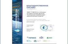 Благодарность школе за проект "Хранители воды" 15.04.2016