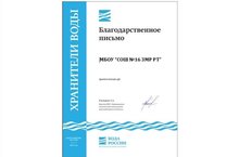 Благодарственное письмо за участие во всероссийском эко-уроке "Хранители воды" получила наша школа. Поздравляем!