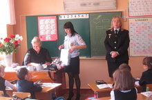 8 сентября в школу пришли сотрудник ГИБДД Леонтьева Ю.И. и инспектор по делам несовершеннолетних Купчихина Т.А. к ученикам 1 класса, чтобы поздравить их с зачислением в школу и рассказать им о правилах поведения в школе и по дороге в школу , а так же вручить им тетради юного пешехода.